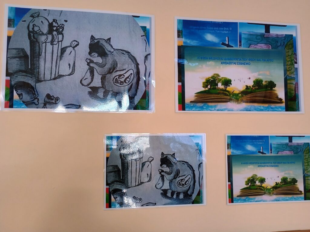 20 Ιανουαρίου 2026” Στο πλαίσιο του Άξονα ”Ηγεσία – Οργάνωση και διοίκηση της σχολικής μονάδας” και για την υλοποίηση του δείκτη ” Προστασία, αξιοποίηση και εκσυγχρονισμός σχολικών χώρων – υποδομών” η Ομάδα δράσης των εκπαιδευτικών του σχολείου με συντονιστή την Αναστασιάδου Ειρήνη και τους εκπαιδευτικούς Ελευθεριάδου Αναστασία και Τσογγίδη Γεώργιο, θέτοντας ως στόχο την αισθητική αναβάθμιση του σχολείου για ποιοτικότερη εκπαίδευση των μαθητών/τριών, ενέπλεξε τους/τις μαθητές/τριες στη δημιουργία αφισών – εικόνων/φωτογραφιών/ζωγραφιών και τη σύνθεση κολάζ, που αναρτήθηκαν στο χώρο της σχολικής αίθουσας του Γ5. Η θεματική των δημιουργιών περιελάμβανε τη σύνδεση και προστασία του Φυσικού περιβάλλοντος ως αποτέλεσμα της ανθρώπινης πρωτοβουλίας μέσα στο πλαίσιο της ζωής του σύγχρονου ανθρώπου και της ορθόδοξης θεολογίας. Οι μαθητές/τριες ζωγράφισαν δικές τους εικόνες, φωτογράφισαν εικόνες του φυσικού περιβάλλοντος της κοινότητάς τους, αναζήτησαν φωτογραφίες για το φυσικό περιβάλλον από το διαδίκτυο και συνέθεσαν ψηφιακό κολάζ. Με διαφορετικά ψηφιακά εργαλεία δημιουργικότητας αλλά και χρωματιστά μολύβια, μαρκαδόρους, κραγιόν, ξυλομπογιές ολοκλήρωσαν τη δράση αναρτώντας τις δημιουργίες στην τάξη τους”.